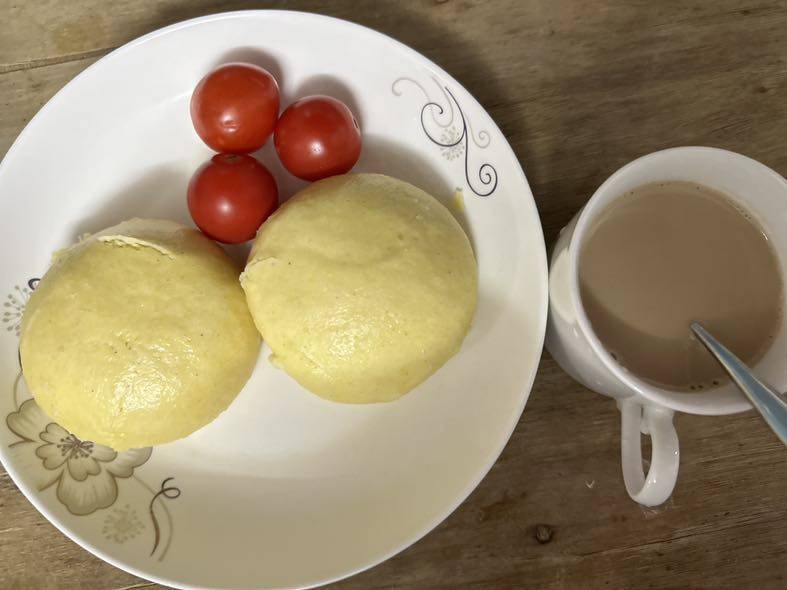 今天的早餐馒头,哈哈。终于不是玉米了,最近玉米便宜,然后一下子买了好多条,10元7条,吃了好几天。还有两条,明天继续吃。