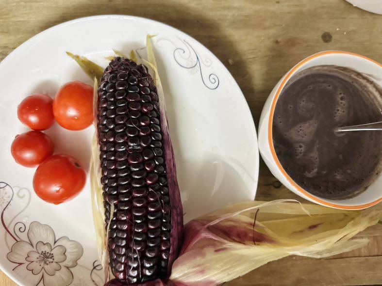 昨天的早餐,黑玉米,有点会掉色呀。然后本来晚上也只吃玉米的,结果没忍住,吃了个泡面,有点上火了,牙龈有点痛。🙃