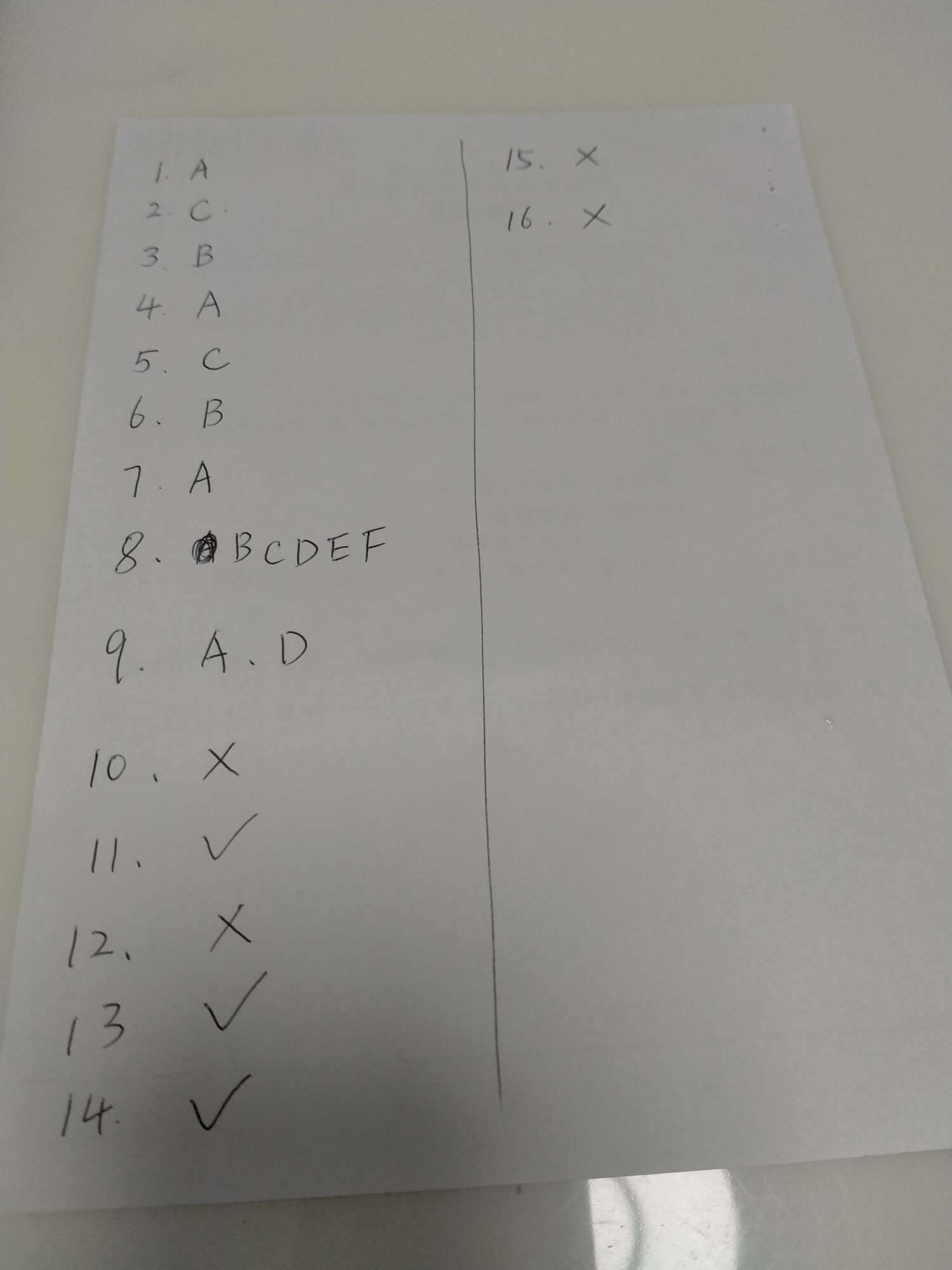 1.A B C D E F 2.A B C D
