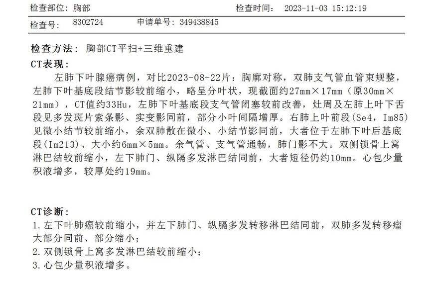 到11.3号吃药100天,刚好第二次复查,结果都出来了,主治说总体还在缩小,咨询是否有手术可能,他说不建议,要手术还不如放疗。