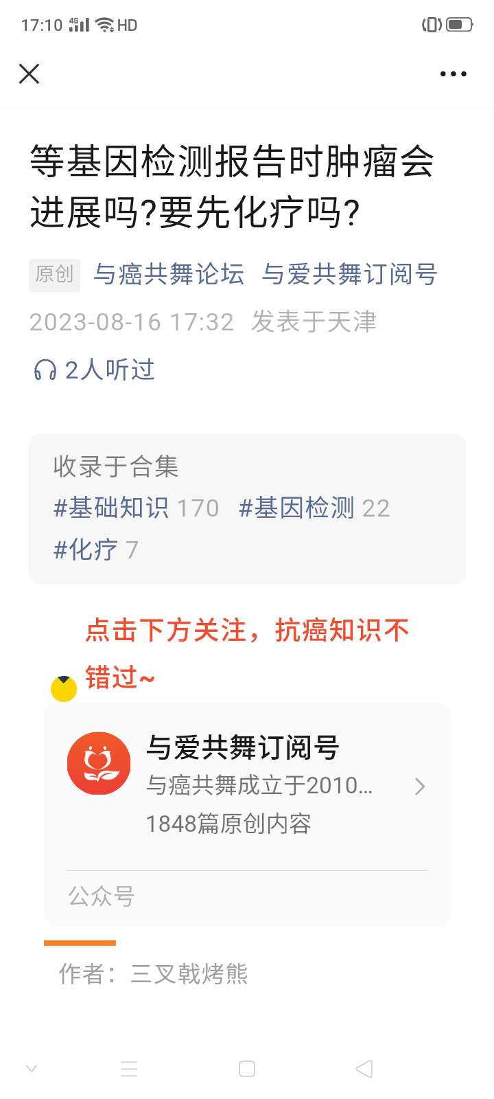 摸索前行在等待基因检测结果的时候,是否进行化疗,需要综合考虑多个因素,尽早用药与盲目用药或许就在判断依据的细节分析之中,希望大家在治疗中多一些理智,你搜一下这文章