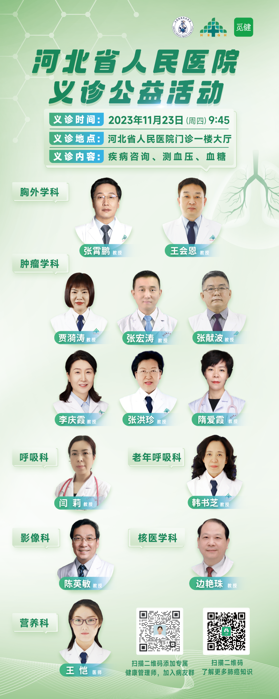 此外,当天还会开展义诊活动,来自河北省人民医院的多位知名专家将面对面、一对一解答患者及家属的疑问,帮助患者清晰了解病情,提升诊疗规范性和依从性,增加抗癌信心。