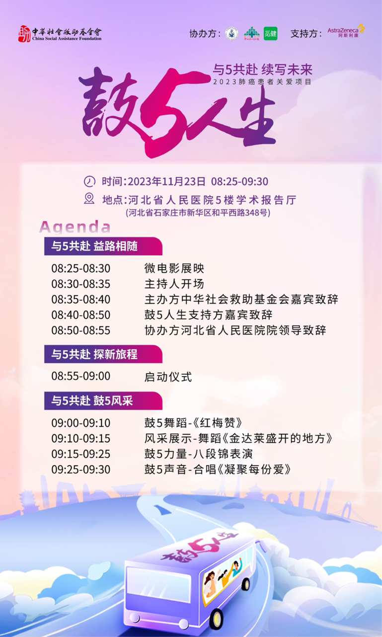 以“与5共赴 续写未来”为主题,2023“鼓5人生”肺癌患者关爱项目,即将来到河北省人民医院。