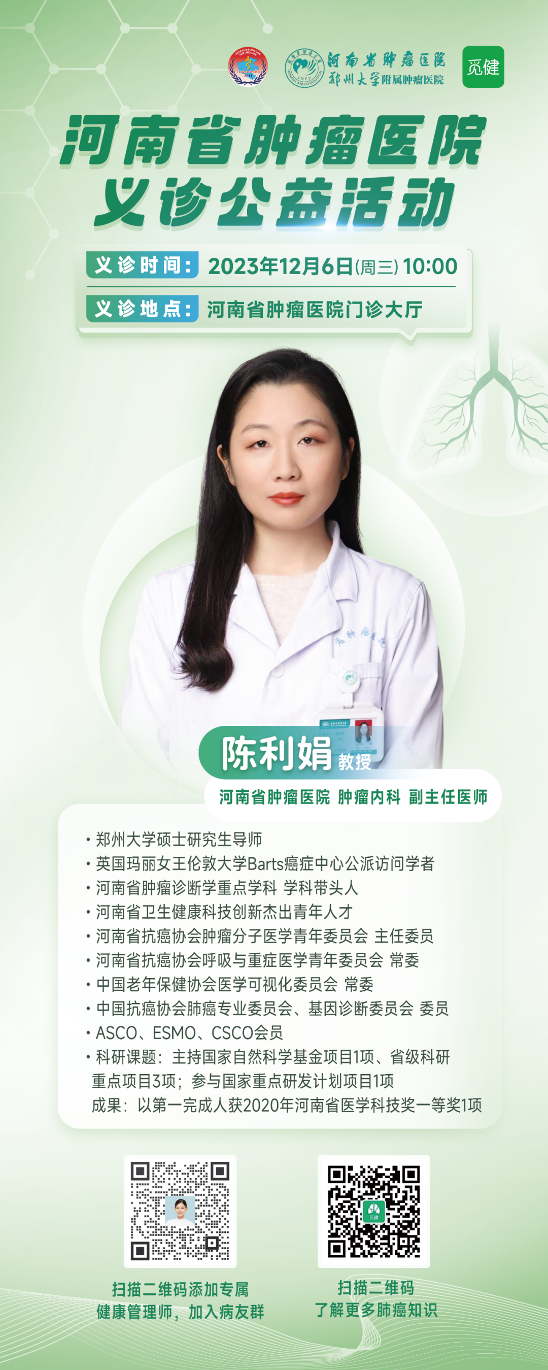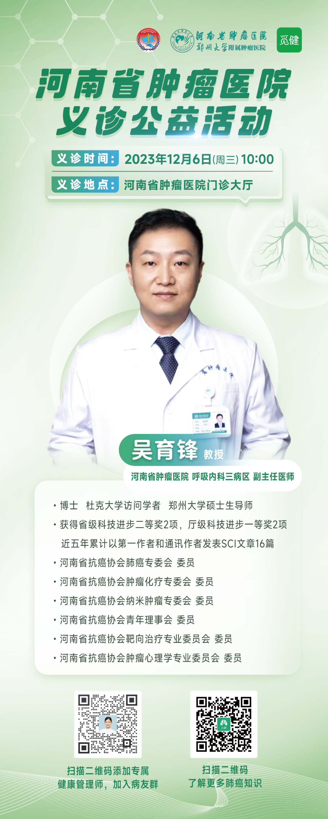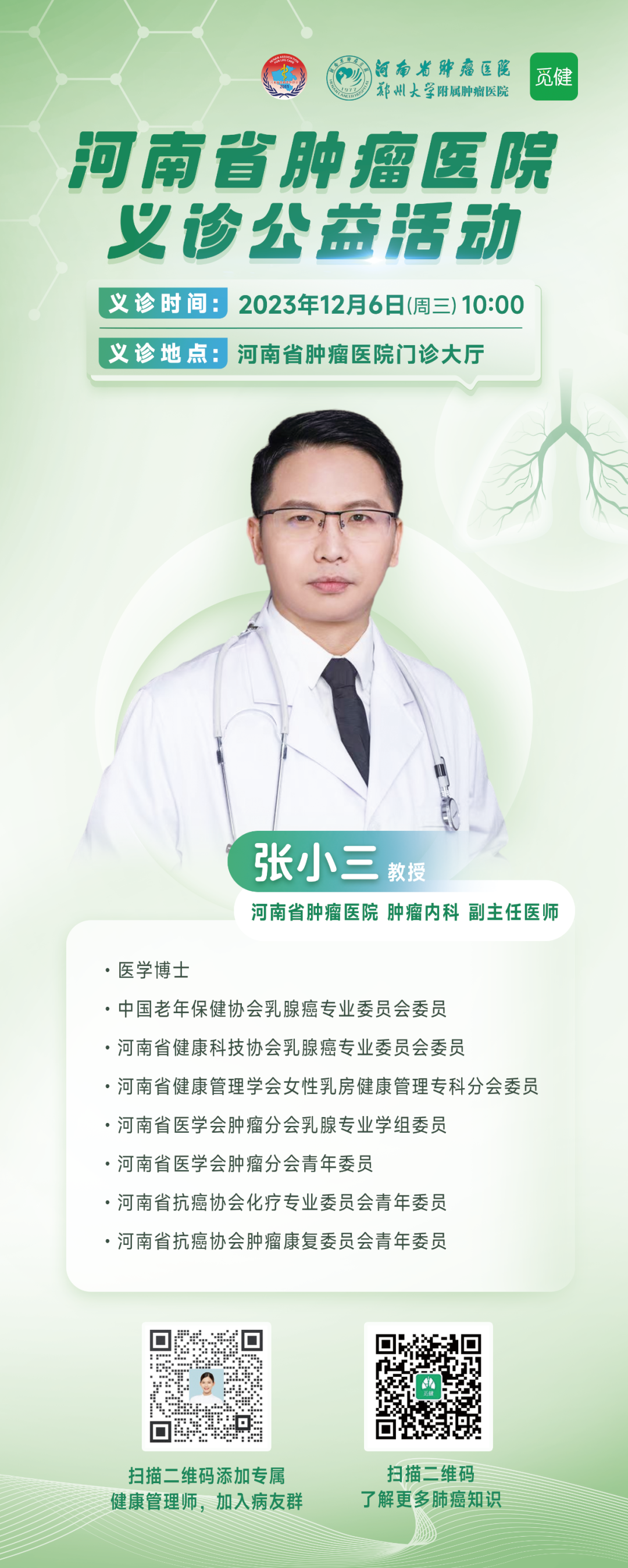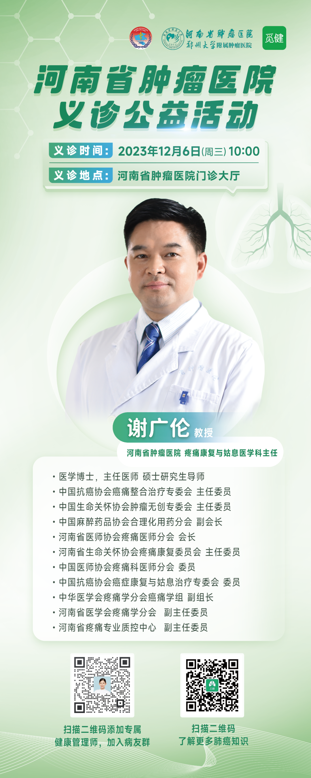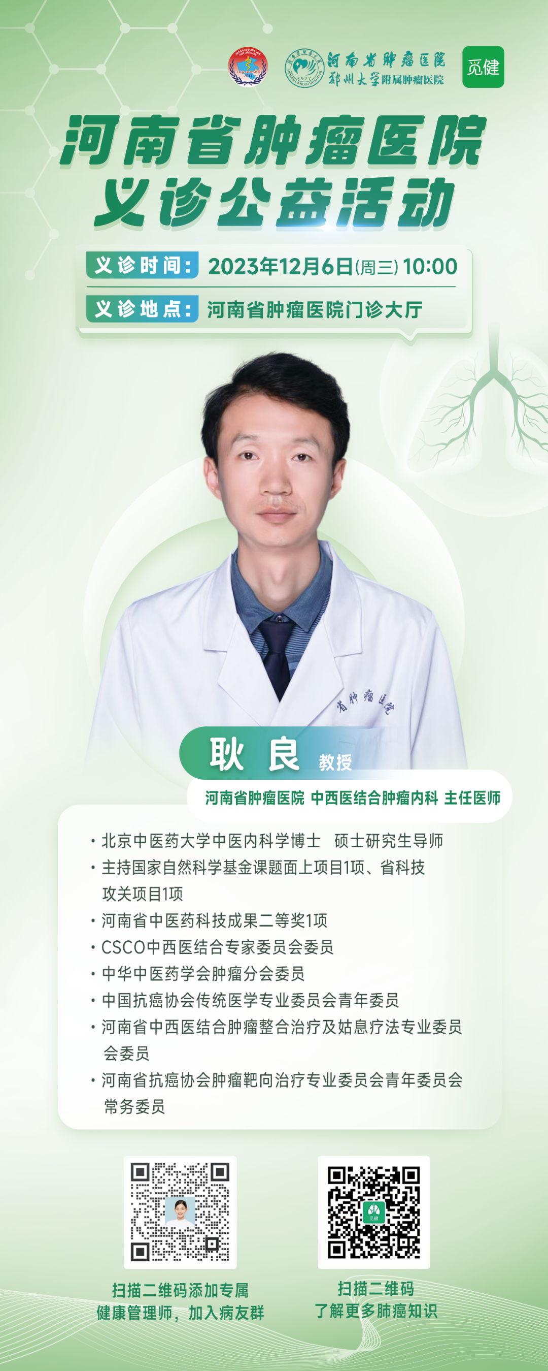 专家来啦!12月6日河南省肿瘤医院义诊活动,不容错过!