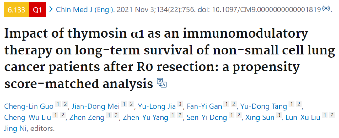 目前最直接的证据是2021年由四川大学华西医院刘伦旭副院长牵头进行的回顾性单中心临床研究(Title研究)。接受胸腺法新治疗者1027例,未接受胸腺法新治疗者4719例。