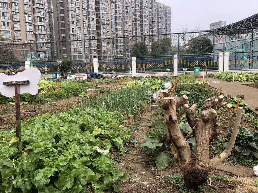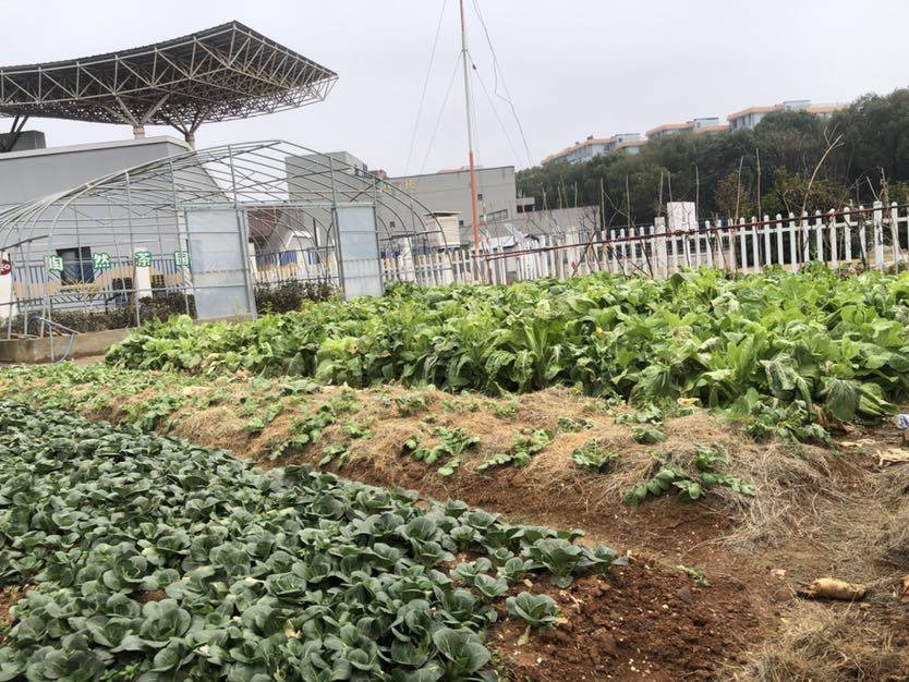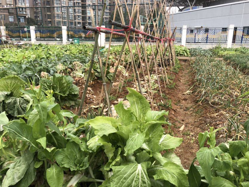 等公交车的时候,看看旁边学校的菜地,菜长得不错。