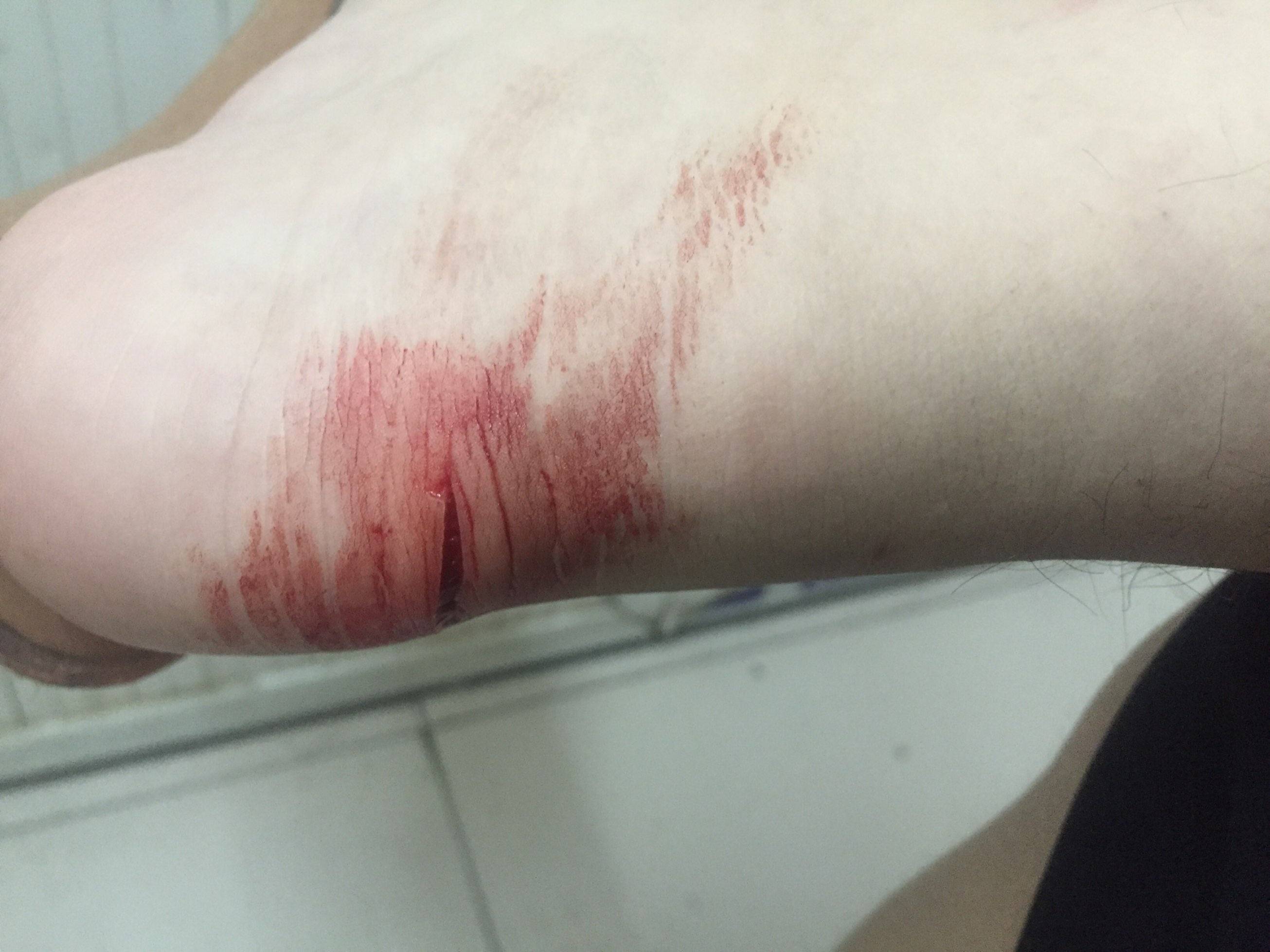 你这伤口和我女儿半年前被玻璃割伤的地方一模一样,当时缝了三针,打了破伤风针,拆线后你个位置走路有点磨脚。