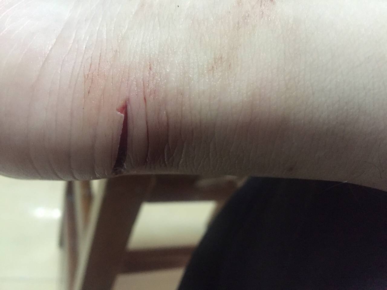 看用什么割破的,好深的口子