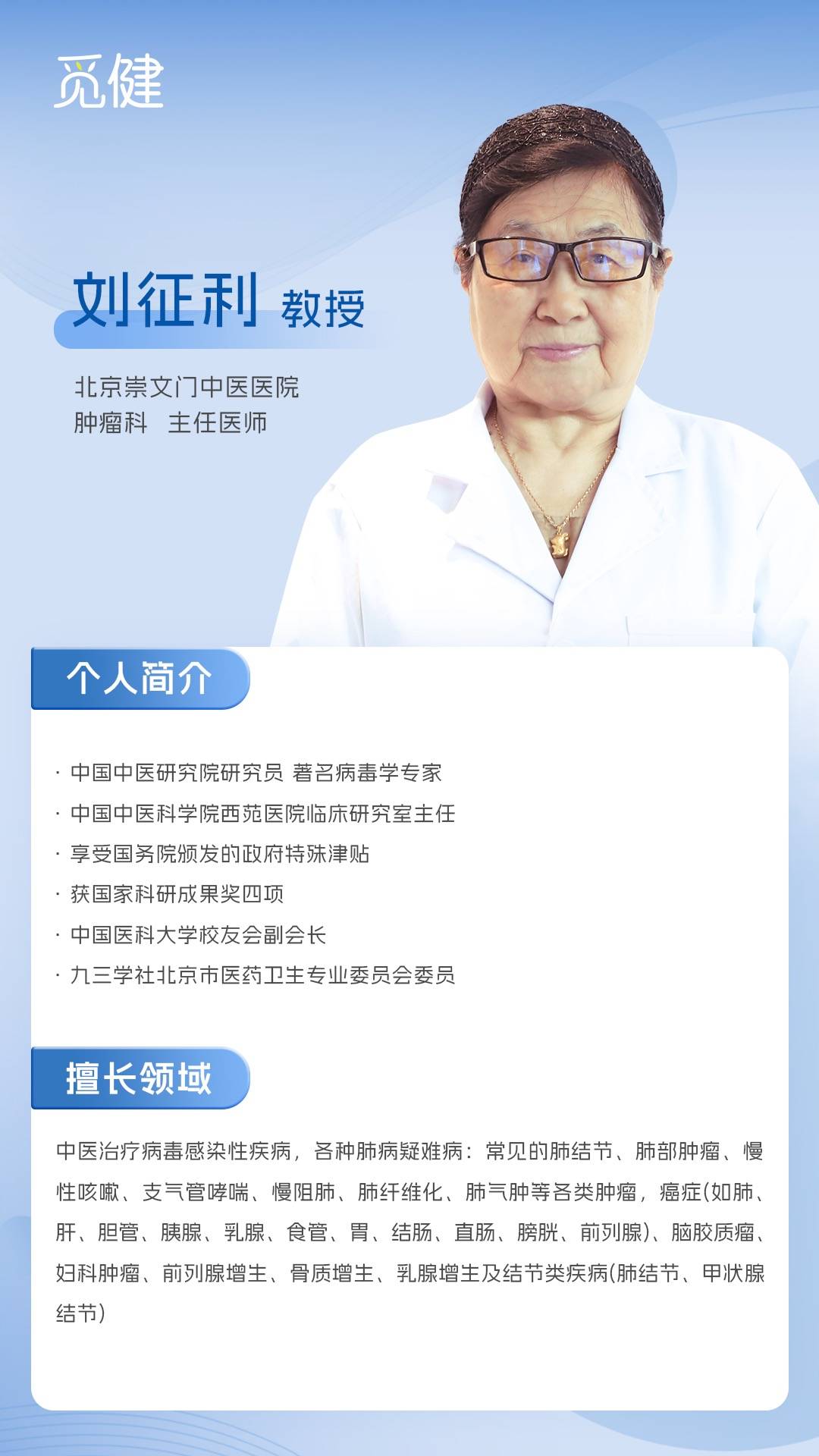 💼擅长:擅长扶正祛邪、化瘀消瘤专攻中晚期肿瘤,如肺癌、乳腺癌、胃癌、肝癌、甲状腺癌、卵巢癌、