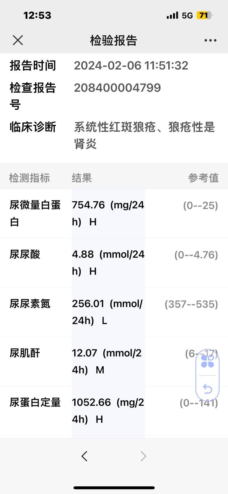 我一直尿蛋白定量一直1g多, 一直很苦恼焦虑 ,无意中在觅健里看见了六时吉祥姐姐的贴子。 我就向姐姐求助 ,姐姐很有耐心的给我提供帮助和建议 。在她的帮助下 ,我24小时尿蛋白定量23天的时间下降了差不多一克 !真是非常感谢