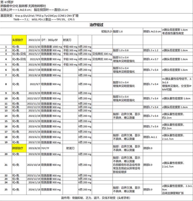🔆病情:肺腺癌晚期脑部寡转移