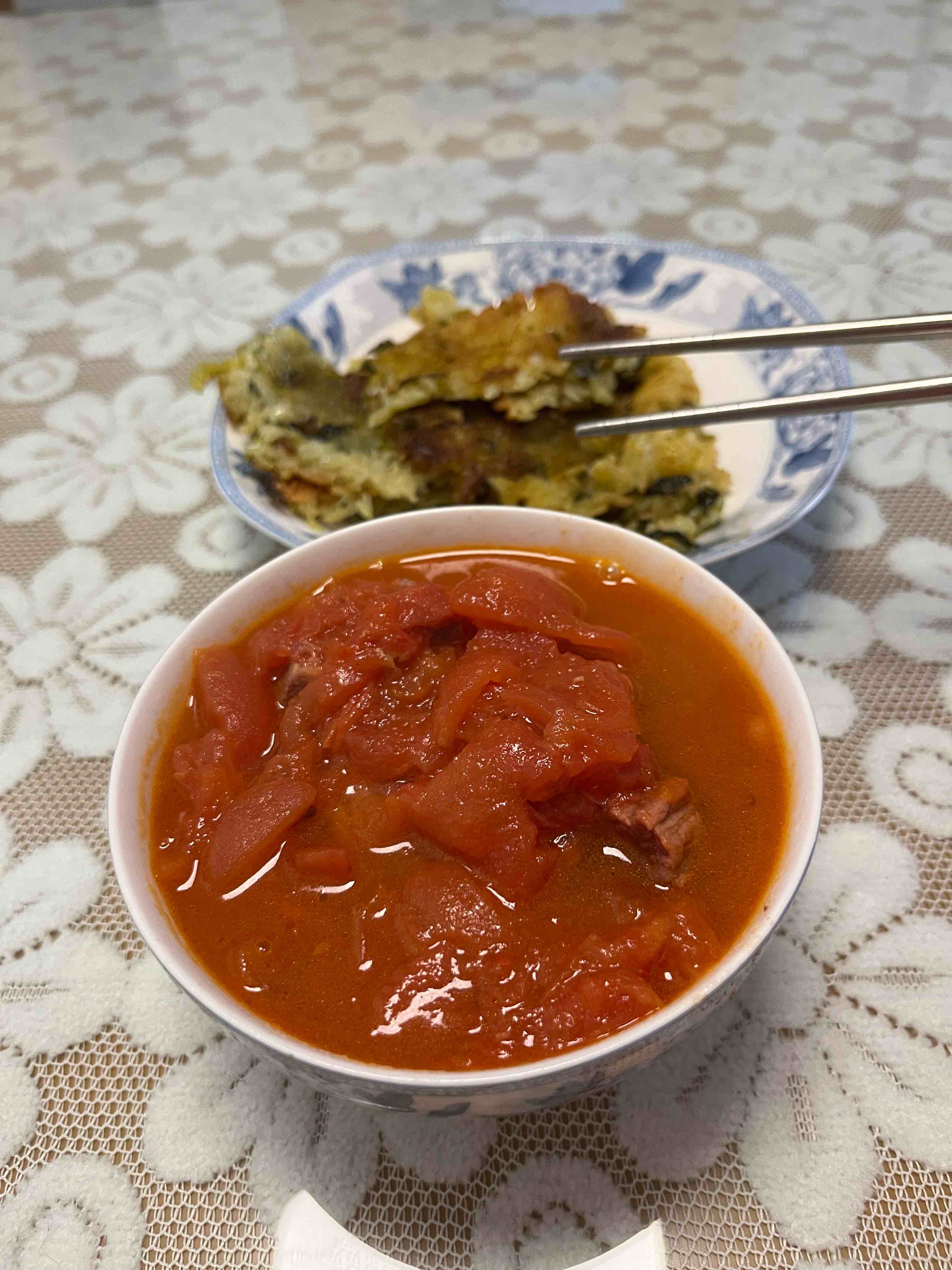 莴苣叶子饭,番茄汤