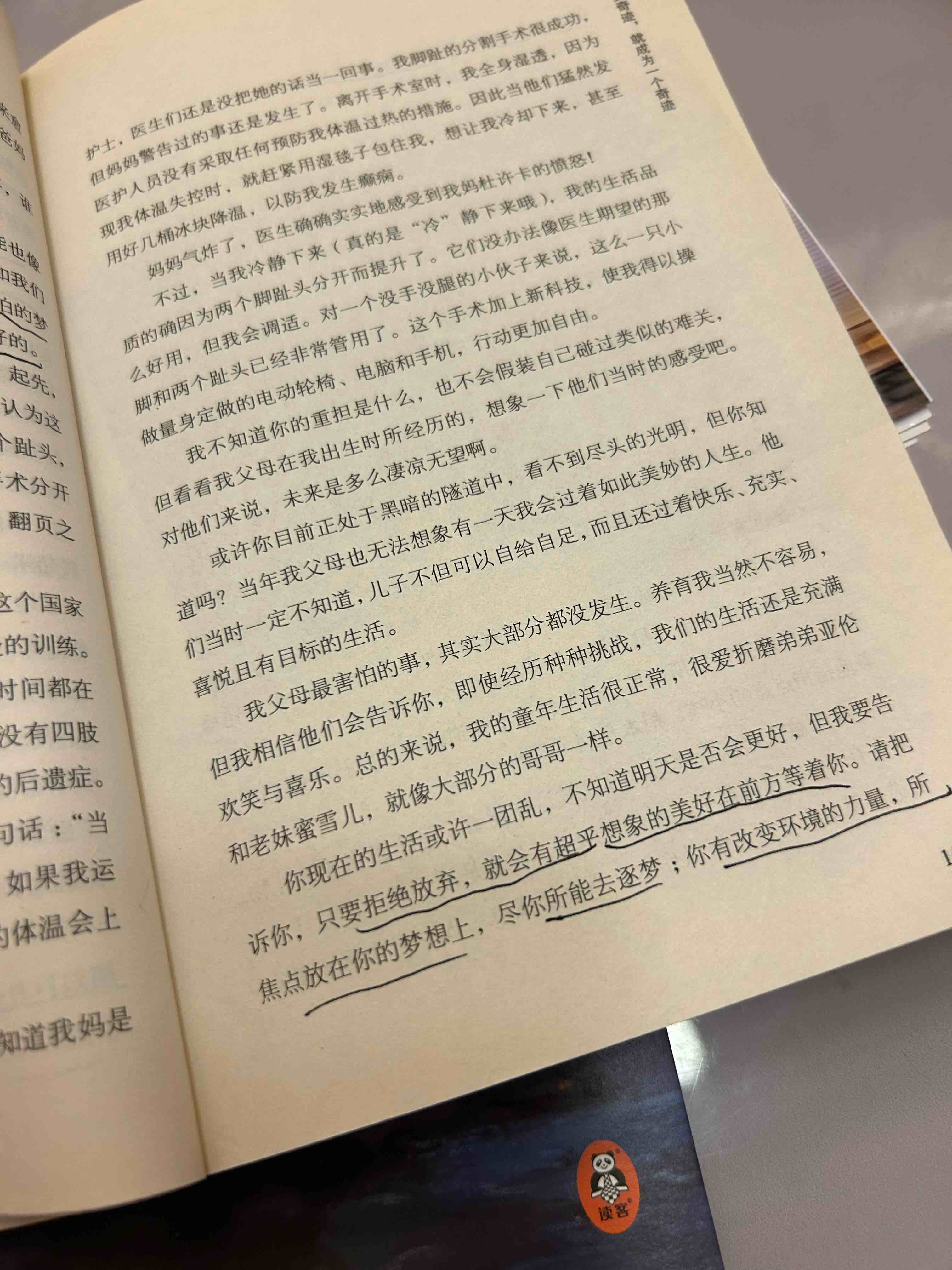 2012年开始治疗,2014年瘫痪,人生至暗时刻。朋友找出《人生不设限》,默默放在我床头。