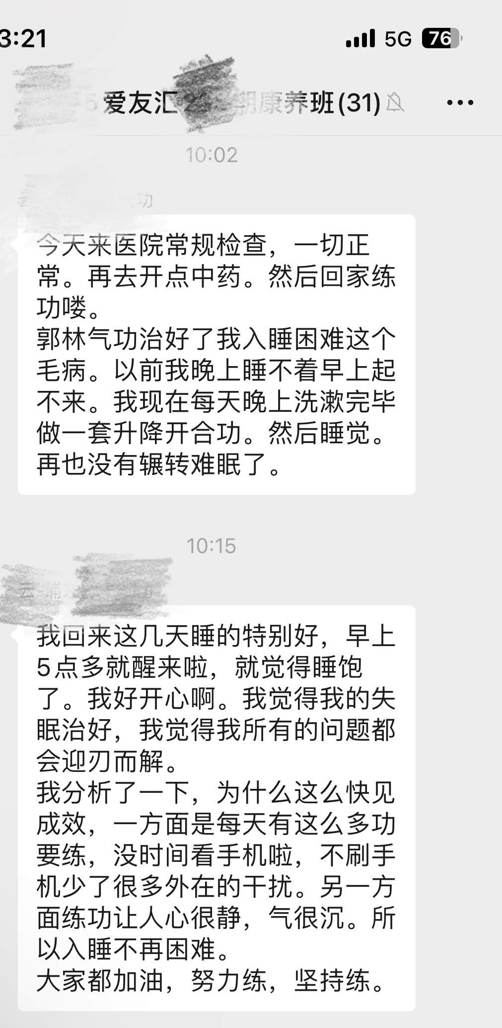 早上看完医生,收到功友的好消息,说她睡眠好了许多。迫不及待分享。