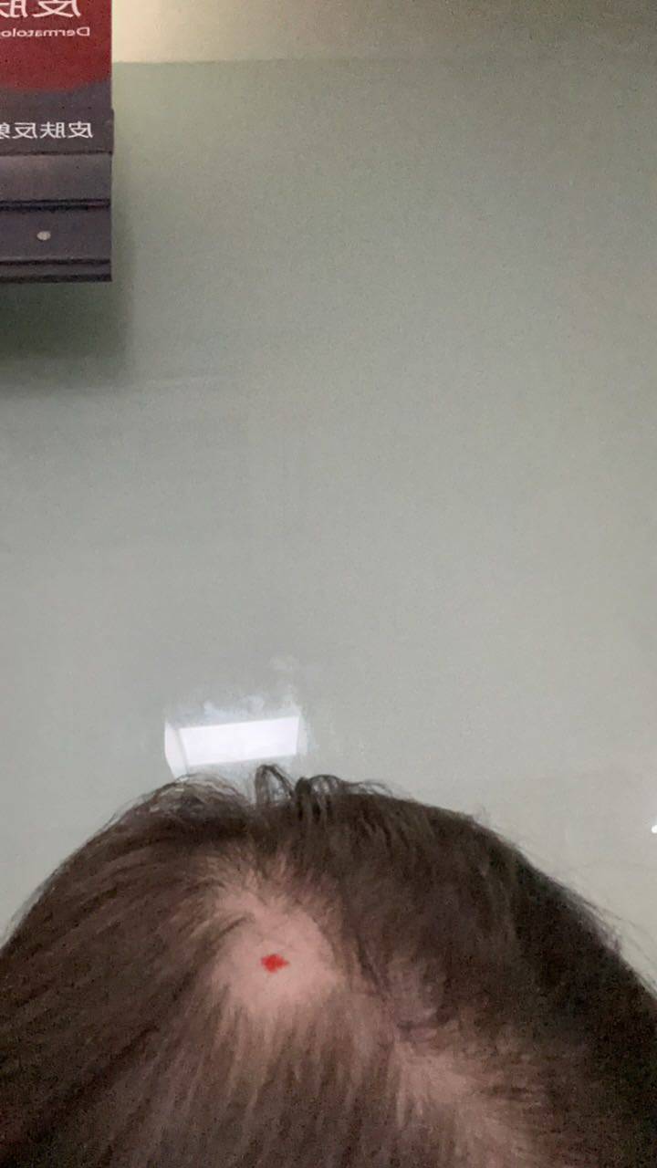 有个检查需要剃掉一丢丢头发查,给我做了红点印记。希望这次有效果吧。