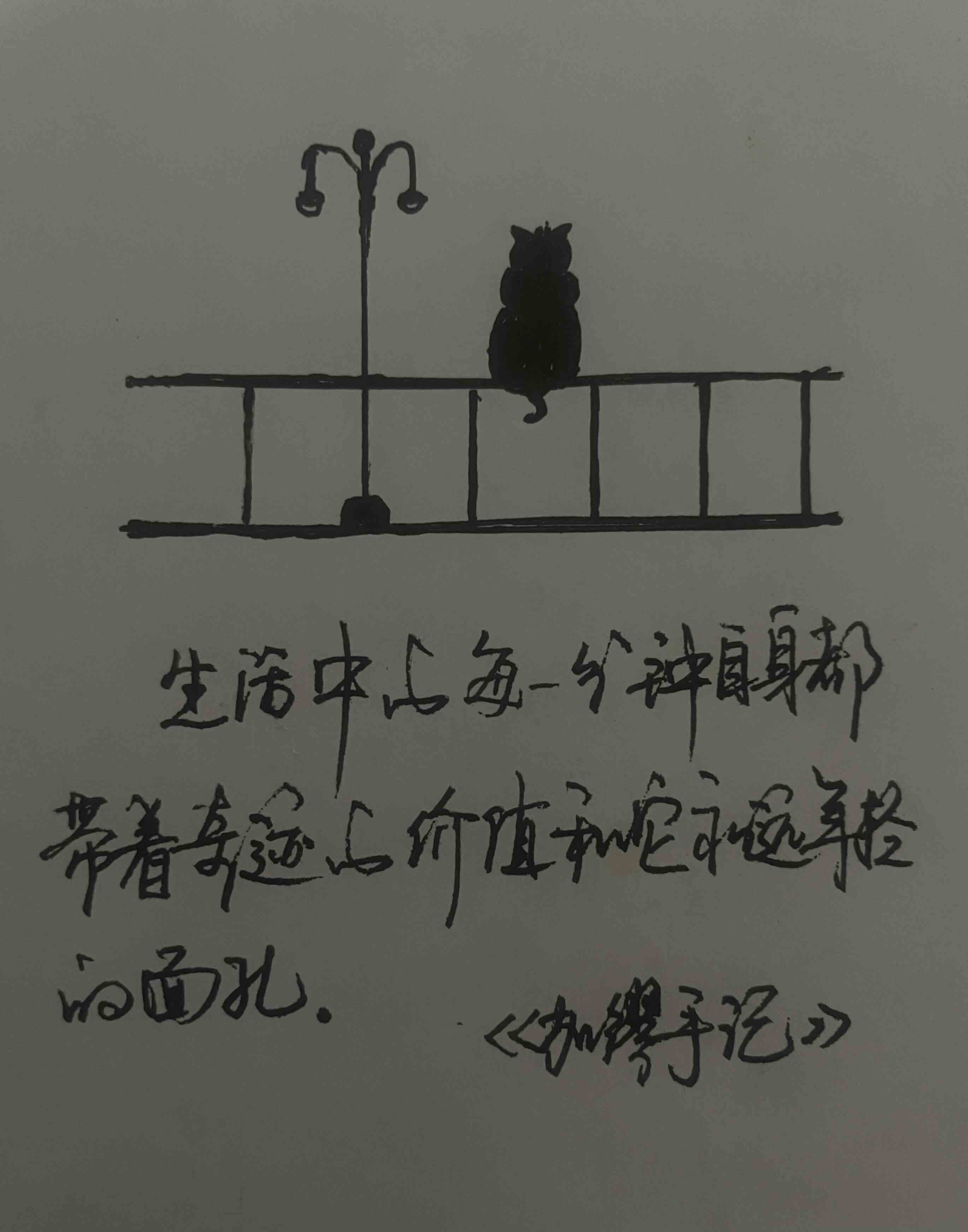 前几个坚持了一段时间的写字因故停更后一直没拾起来,就像我学吉它不知哪个时间再重新开始学习。今天看到一幅简笔画很治愈,又拿起了笔,跟着画画写写,不至于感觉每天都在荒废时间。