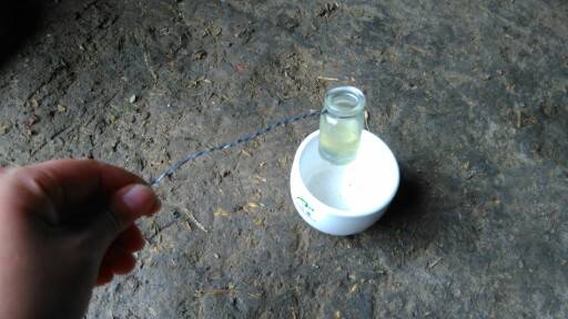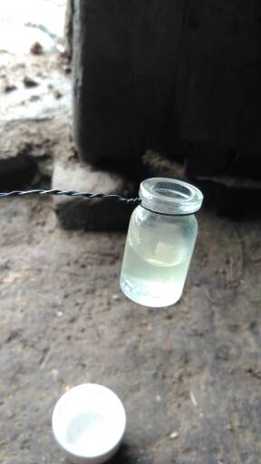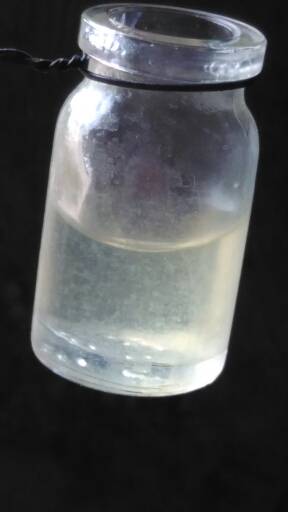 看图制作,把尿倒入小瓶子里,(大家都知道清晨7点之前的尿最好)用酒精烧,直至把尿烧开,(小心观察,当烧的期间有泡泡往上冒的时候就赶紧离开火,以免尿烧开全溢出来了)尿烧开放旁边冷却以后,观察尿的清澈度,大家看到了,我的是浑浊的,说明还有尿蛋白,正常的烧出来如清水一般。