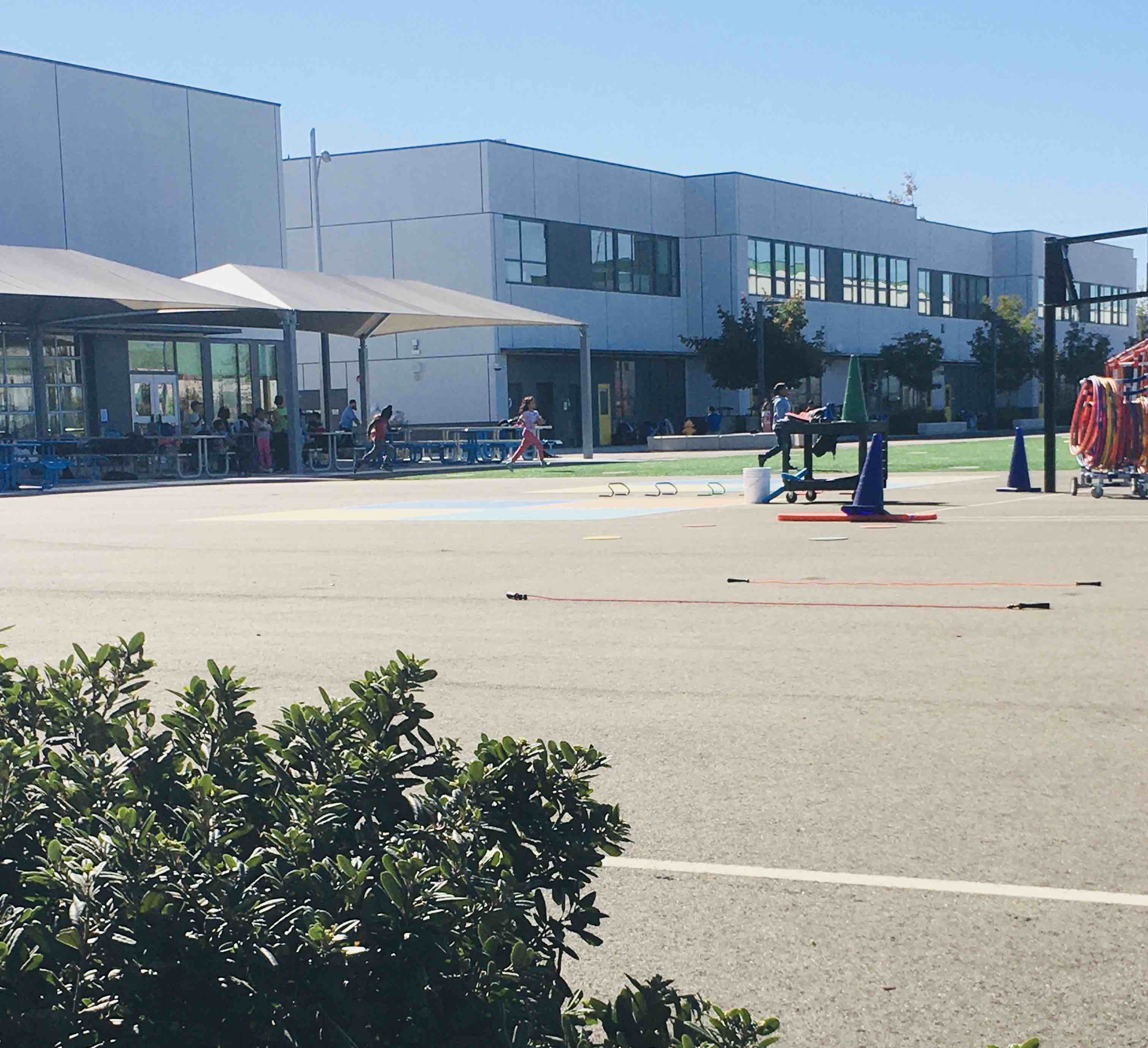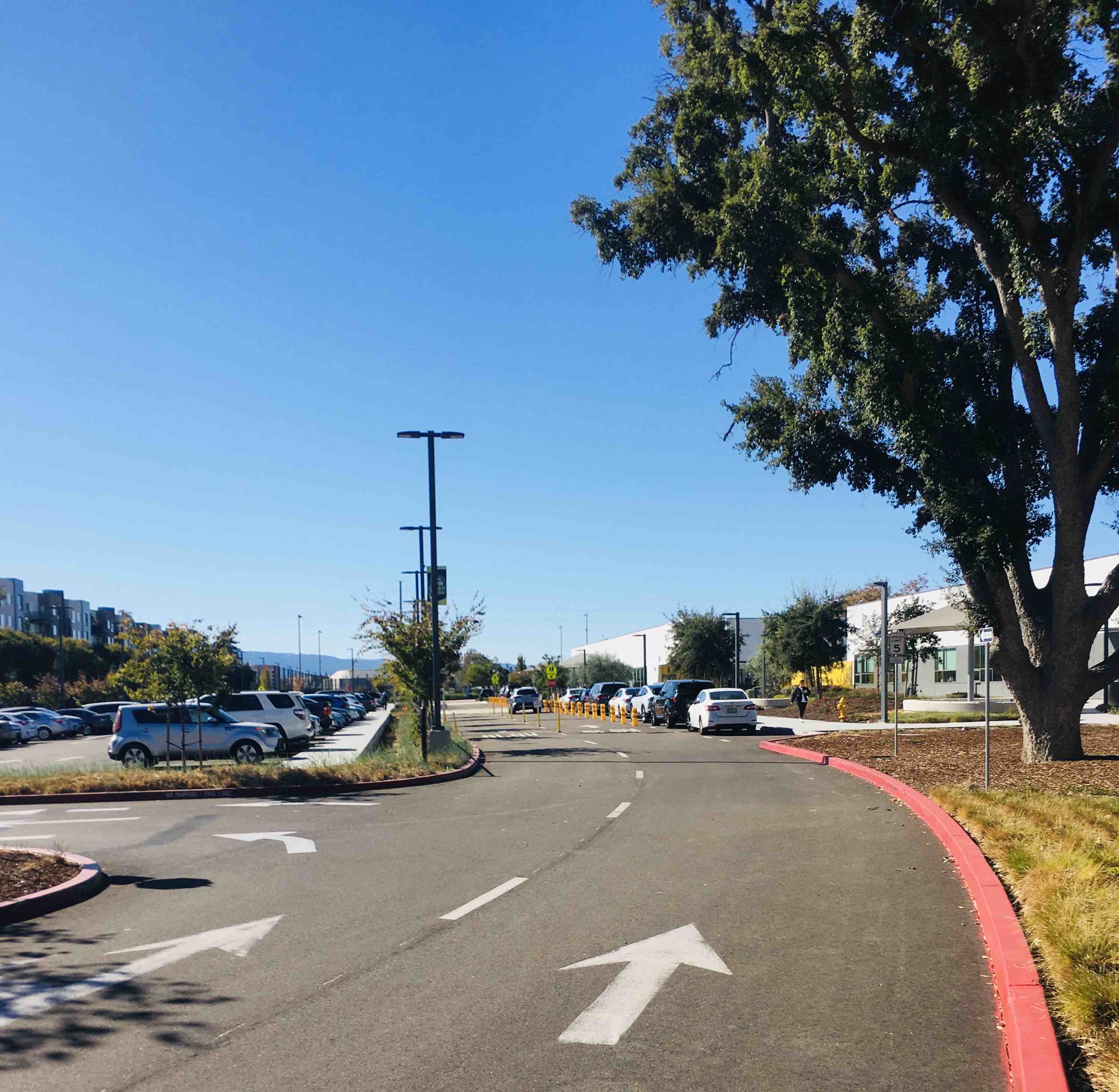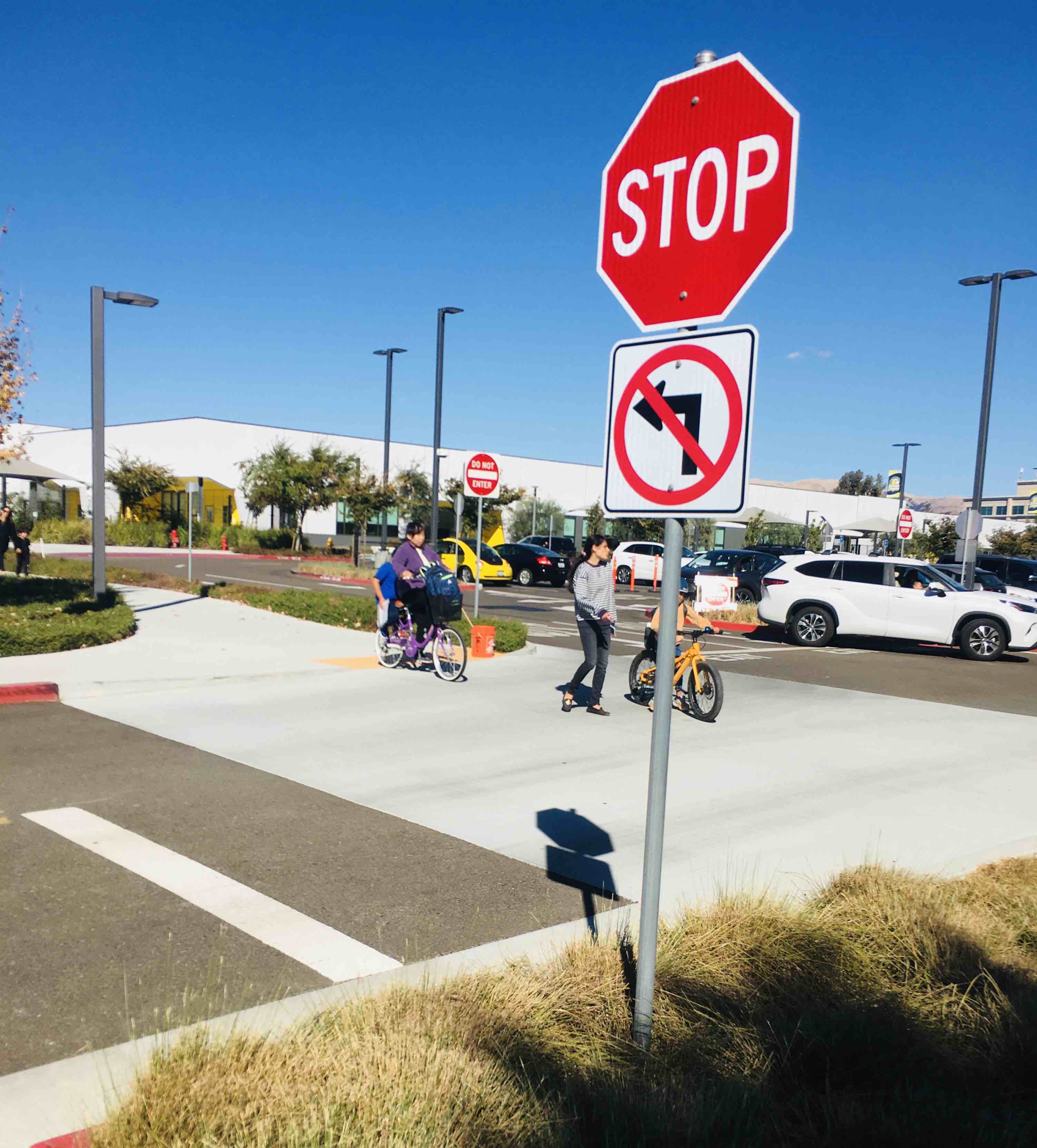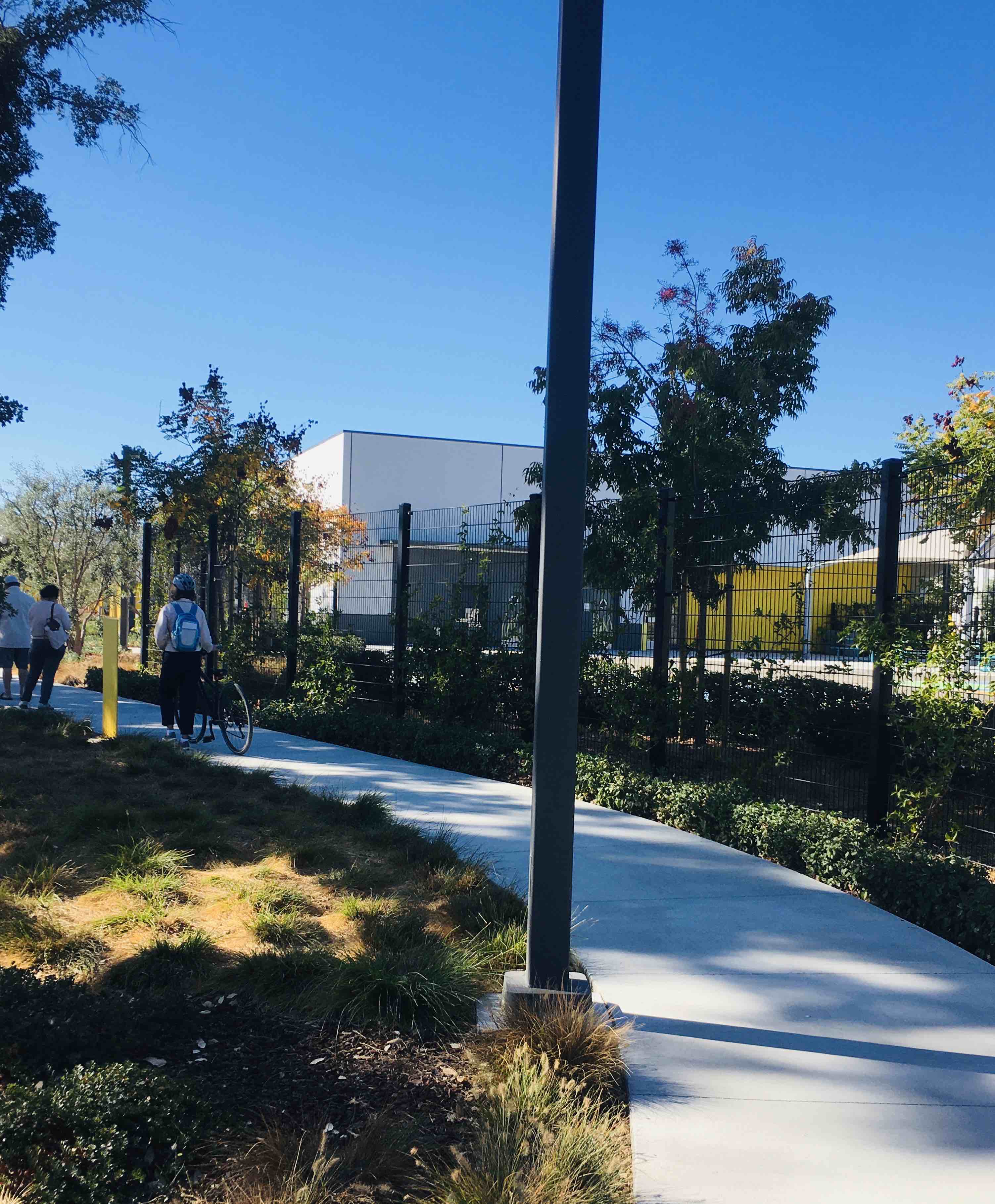 昨天下午走路锻炼身体,在儿子家门口旁边的学校周围转了一圈,中学、小学、幼儿园连在一起,分别由铁网隔开,学校旁边有宽敞的停车位,方便家长接送孩子,一辆辆接孩子的小车从身边经过,车里面有一到两个孩子,住在附近的孩子骑着自行车家长陪着,还有的孩子踏着滑板车,这时我看到一个华人奶奶骑着自行车后面坐着个男孩子,我赶紧照了一张照片,感觉像是在中国一样,倍感亲切,想起孩子小时候我们就是这样接送孩子上学放学。