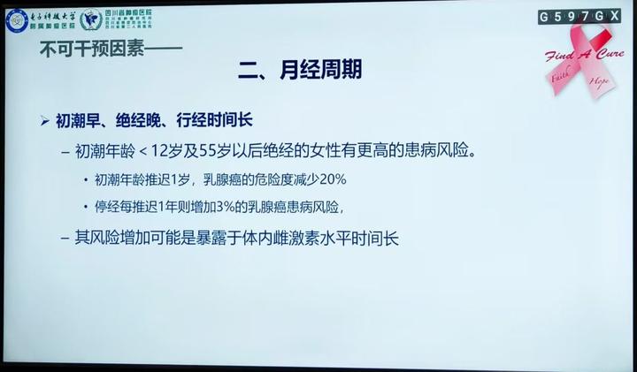 3、经期太早来,太晚结束都会增加发病率。就是因为雌激素水平高的时间越长风险越大。平均绝经年龄是49岁。