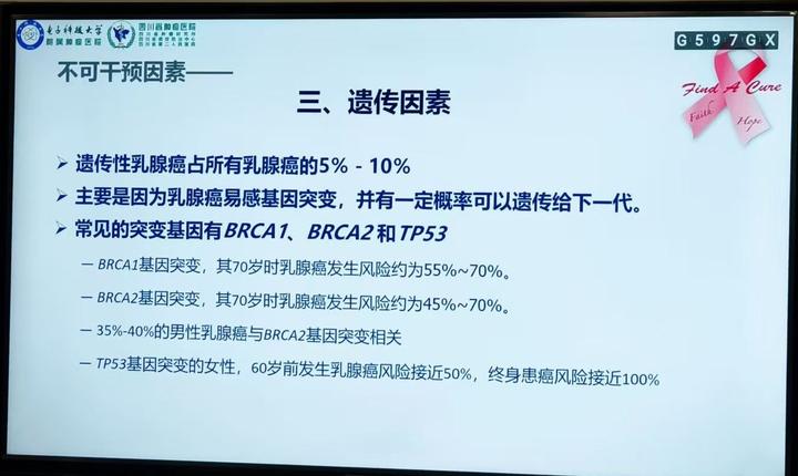 1、不可干预因素我们了解即可,“人力无法改变”。关注点放在可干预因素上!男性也有乳腺癌风险,在乳腺癌中占比为1% ,遗传因素有影响,王主任收了一个男病人,三个姐姐都是乳腺癌。