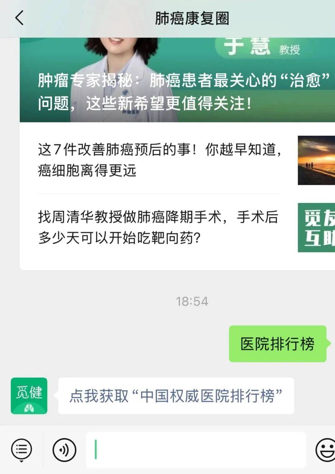 第三步 发送“医院排行榜”到对话框