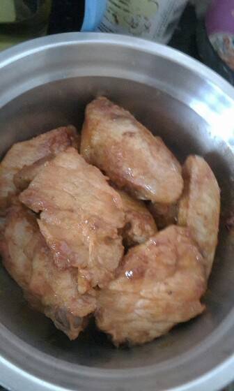 买了奥尔良烤翅粉,腌制了一天,这个粉有点难度,要腌制一天哦,而且一包才腌制2斤半鸡翅,不怎么好!