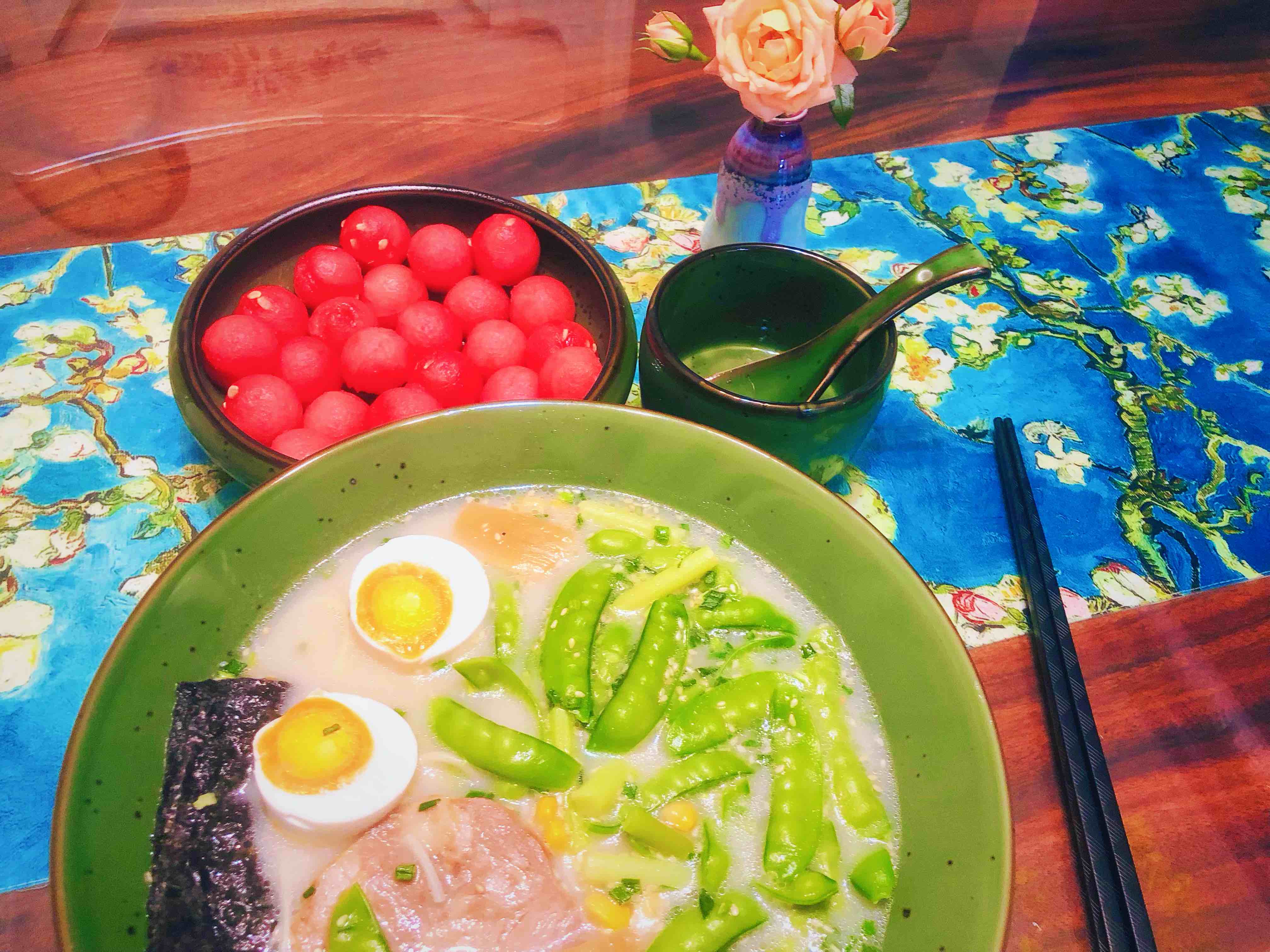 我赶早下碗面条🍜投喂。闲来无事,又把西瓜🍉挖成球球。他边吃边笑,说我够无聊🙄️