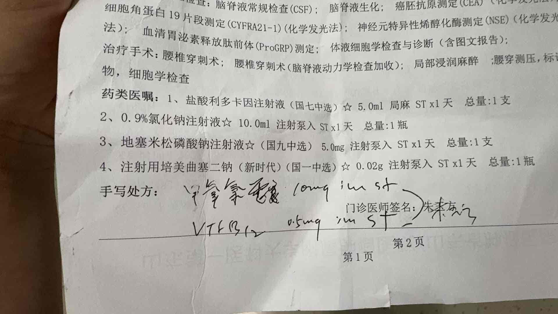 从周三做头部增强核磁 虽然没显示脑膜转移 但是自己的预感跟妈妈各种不舒服的症状都像极了脑膜转移 昨天做了上腹部下腹部增强 还好稳定 今天凌晨4点开车8点到了山东省肿瘤医院神经外科 找了朱玉方主任 进行了腰穿确诊了就是脑膜转移➕脑转移 今天进行了第一次鞘注 量在下方供参考 顺便用脑脊液做了基因检测 希望会有新的突变 主任说颅压300了 很高 放出了一些脑脊液 妈妈也舒服多了 下周三要来在头上装囊和分流管了 因为这样就不用每次进行腰穿了 毕竟太疼了(在这里很感谢病友家属的帮助)在我着急不知道所措的时候 感谢老师们的帮助 一步步给我分析情况 教我去如何面对 总之一切都很顺利 很感恩 虽然确诊了脑膜转移 熟知这是最凶险的转移 但这次这条路走对了 还好还好…