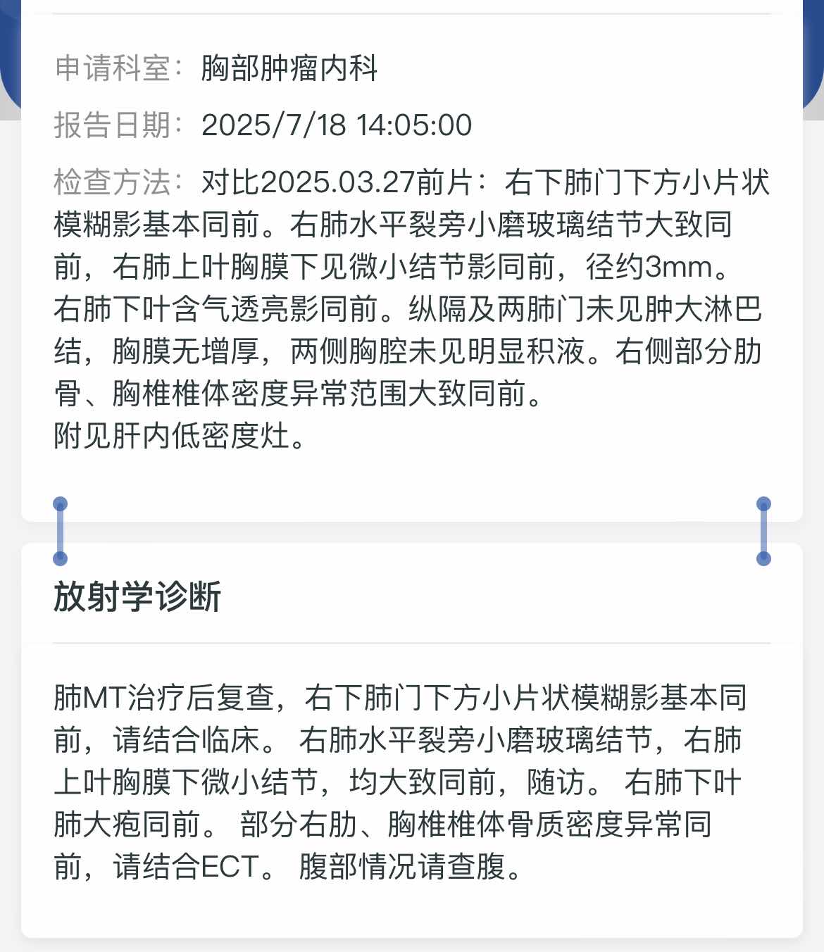 妈妈患肺癌已经有三年了,这三年来一直在接受治疗到现在,下面是妈妈检查以及治疗的过程。2010年10月,妈妈体检出肺癌IV期,纵隔淋巴转移,肝部转移,去省肿瘤医院复查,做了PET-CT,结果一样,省肿瘤