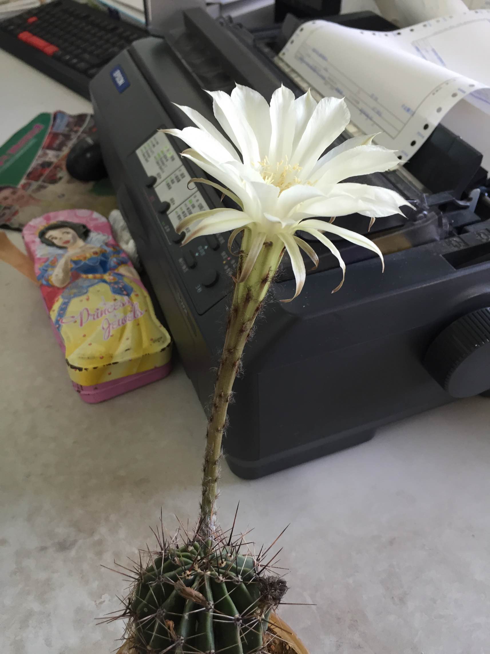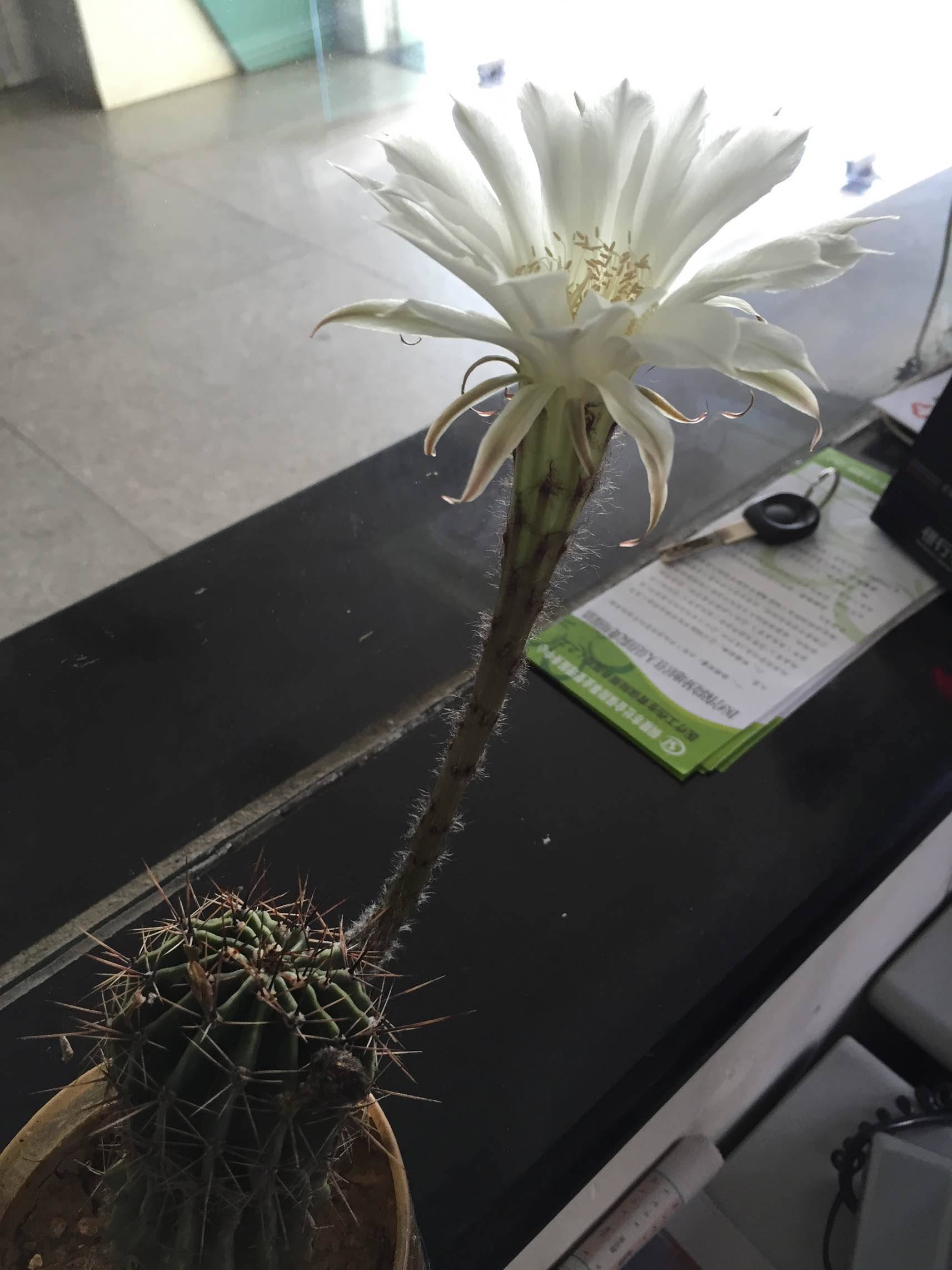 突然发现,科室里的仙人球开花了!惊喜!真是太惊喜了!