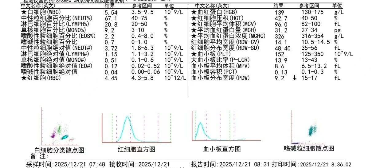 化疗后第一次的验血结果一定要注意。有低的赶快干预,及时吃药可能后面就避免打人粒细胞因子了。昨天复查了下血常规和肝肾功能正常了,比较放心了。周五吃凉的水果吃多了,晚上开始拉肚子,周六上午还是拉。赶快吃上思密达和益生菌,空空肚子,晚上好点了。周日早晨说没事了,真是吓人,化疗后身体弱,什么也需要好好注意 。