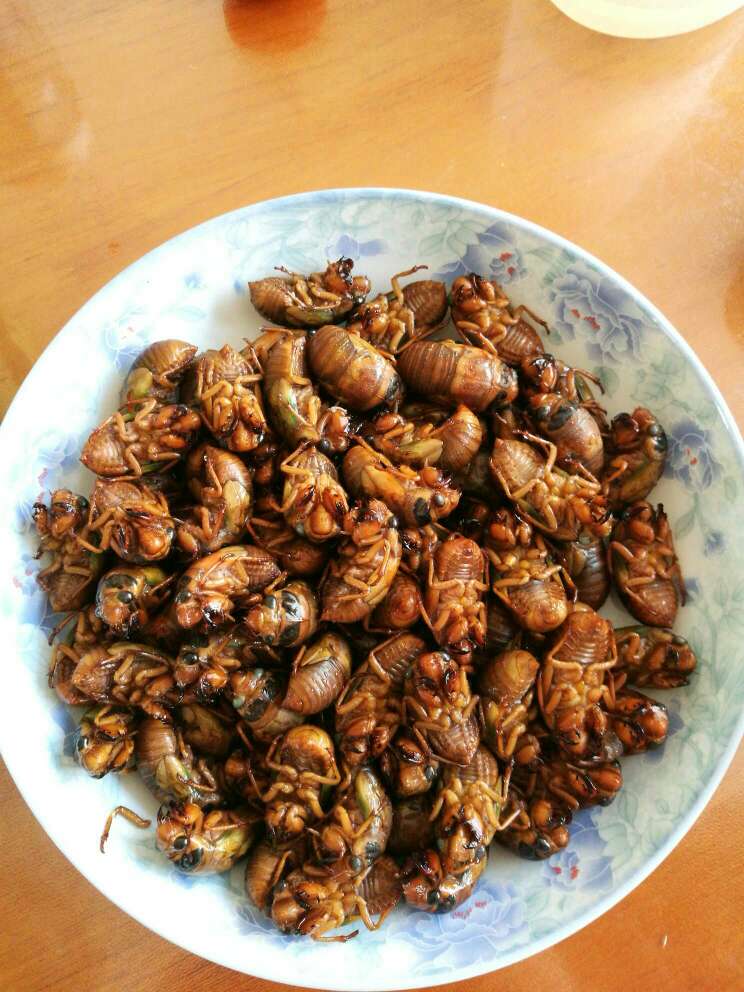 妞,那黑色的知了也是一道好菜,用刀剁碎它然后用芫荽和蒜泥拌着吃,很美味的