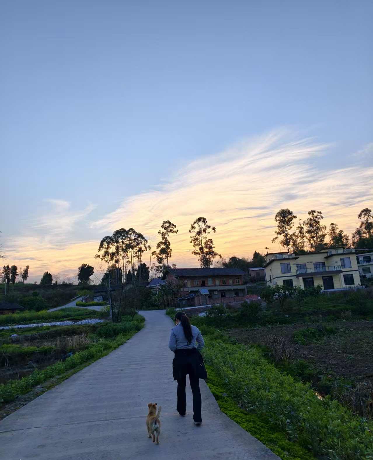 我侄子养的宠物狗因为他去外地上班,又成只单身狗没人陪它,比较落寞。这次我也没带回家里,只有每天晚上去遛它。每天见到我它的那种欢天喜地都会深深感染我,会尽量带它走远一点。今天带着它去郊外看夕阳和晚霞,它特别的欢腾,我的心情会跟着好起来,今天走路超过二万步。