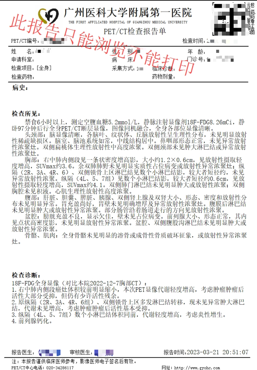 最终的诊断摆在眼前:肺腺癌Ⅲ期,锁骨淋巴结已有转移。