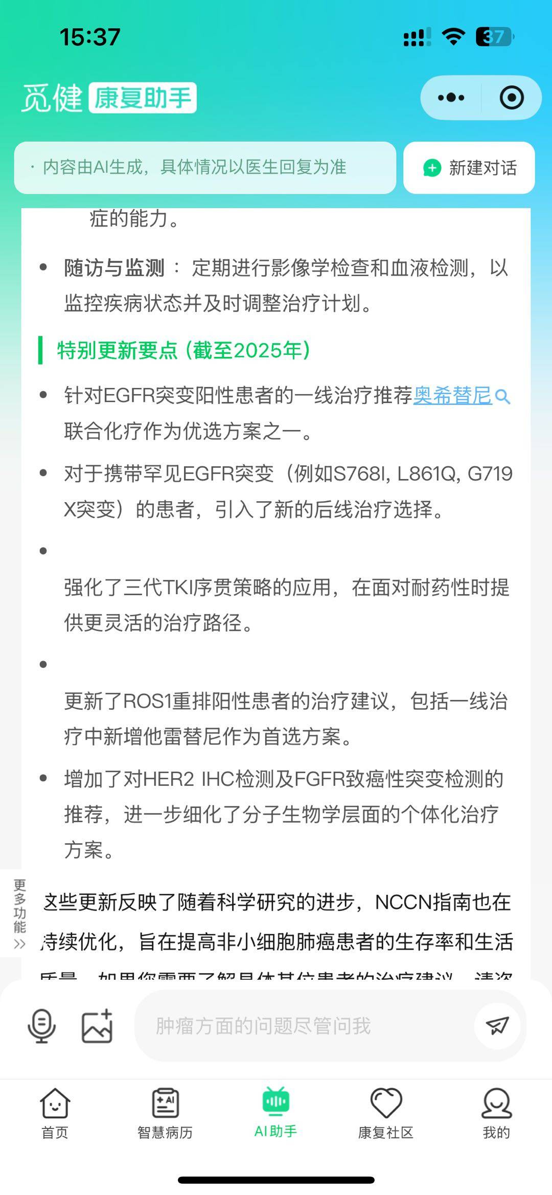 最近NCCN新发布的肺癌治疗指南还挺热门的,用觅吉查了一下,果然出来了很详细的解读,想问什么内容随时追问就可以了,感觉像是癌症版本的deepseek呀!