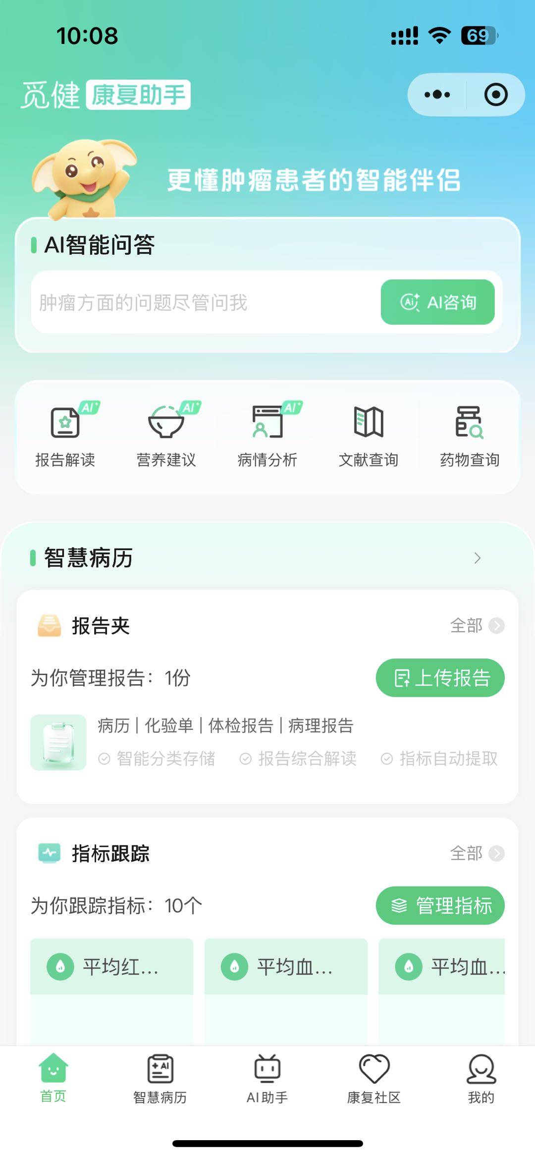 用智慧病历记录的病理报告和指标还不算太多,却经常使用这个工具来查专业文献和做营养评估