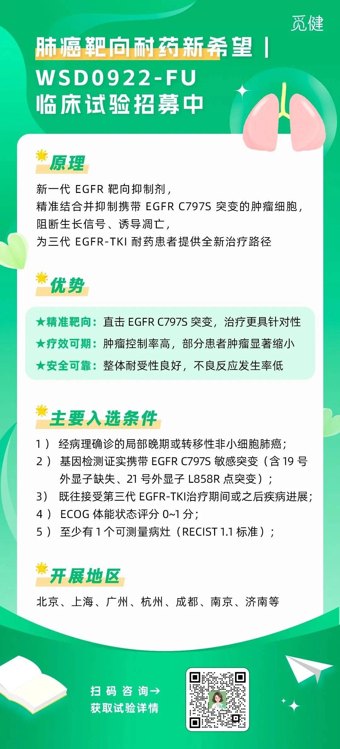 三代EGFR靶向药耐药后怎么办?肺癌口服新药临床试验正在招募,入组可免费用药!