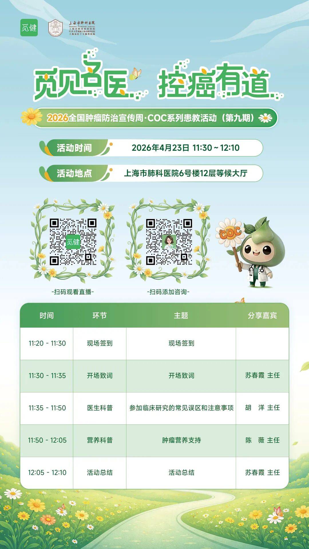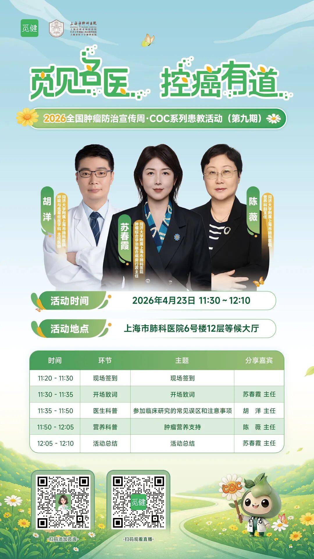 4月23日,无论你奔赴上海肺科医院现场,还是守候在云端直播间,我们都在这里,陪你一起科学控癌、向阳而生!