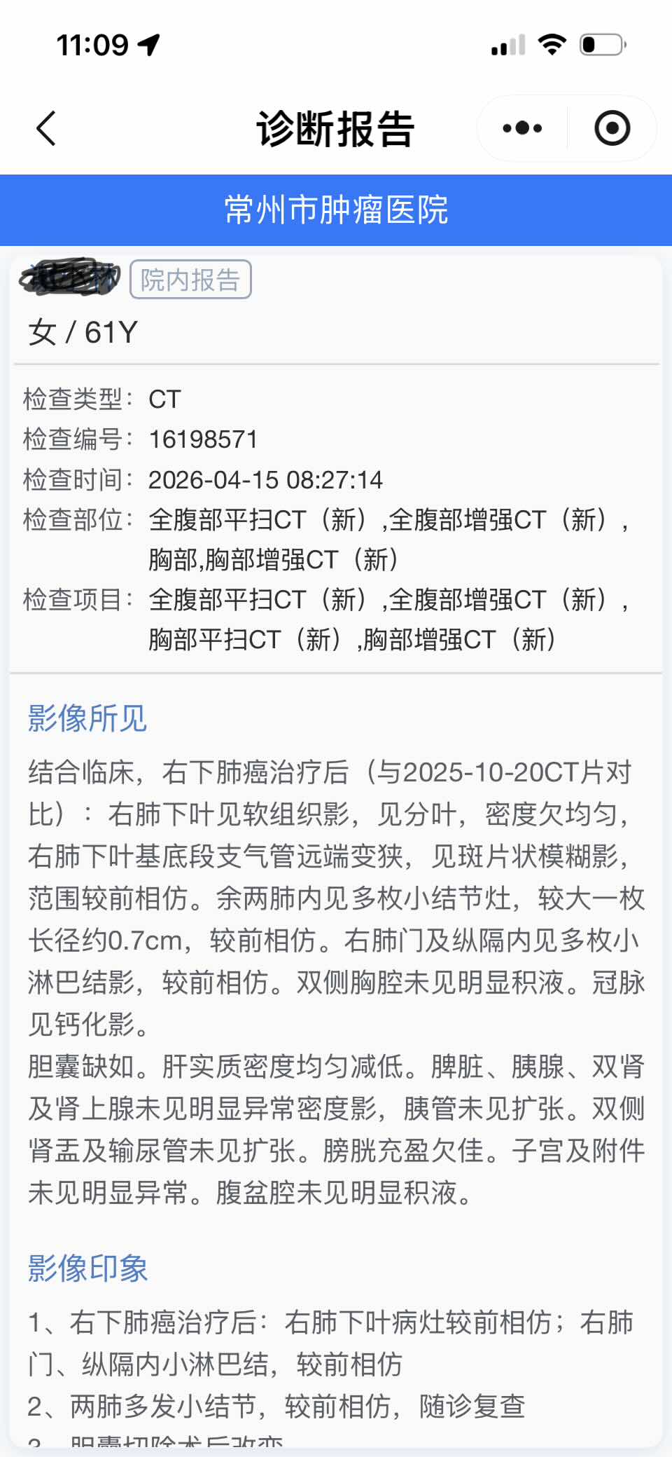 首先:庆幸自己又越过了一个五年大坎!这五年多来,自己熬过了多少靶向药的副作用,从开始确诊时的焦虑到现在的平淡,就像过山车一样的跌宕起伏,又重新回到了现在的状态。心里很是欣慰。