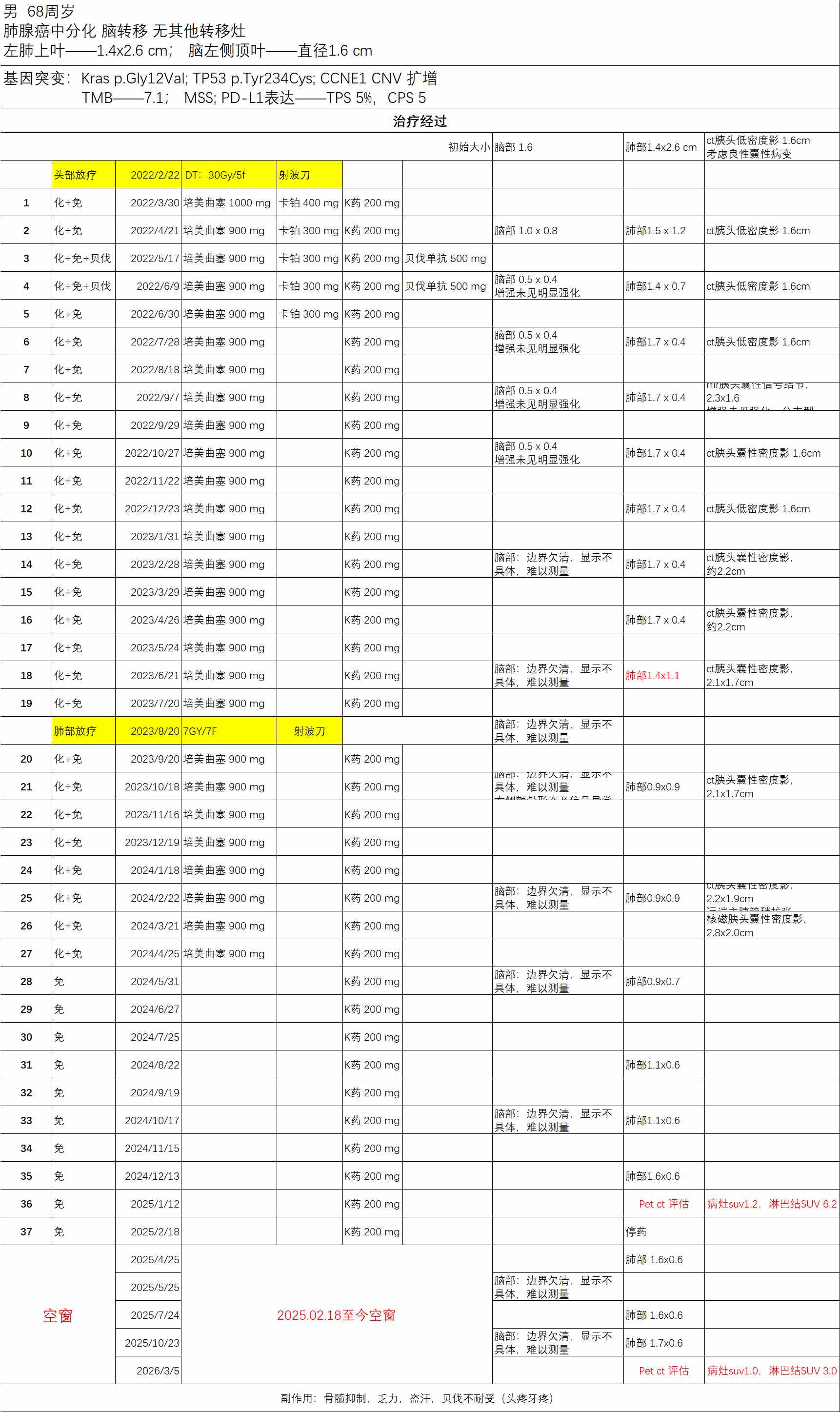 不知道主任会安排什么方案,因为上个月的pet还显示身上并没有其他转移,pet唯独没有拍头,现在想穿刺重新做基因检测估计肺上也没有病灶可以穿,我想了一下无非就是这几个方案