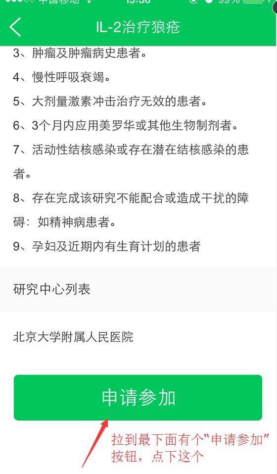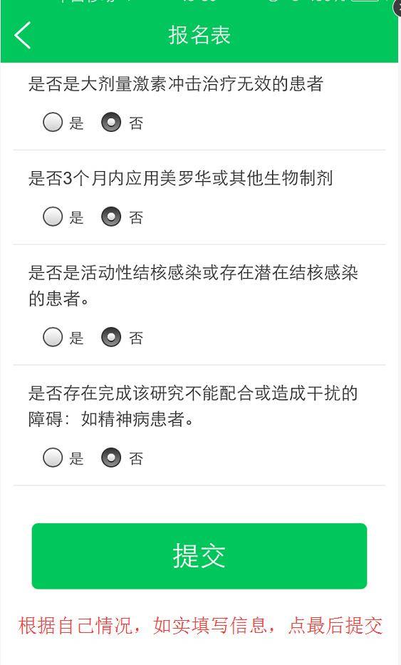 2、实验所在地在北京,且需要2周一次随访。非北京地区的病友报名要考虑路程的方便程度。随意退出会导致病情反复。