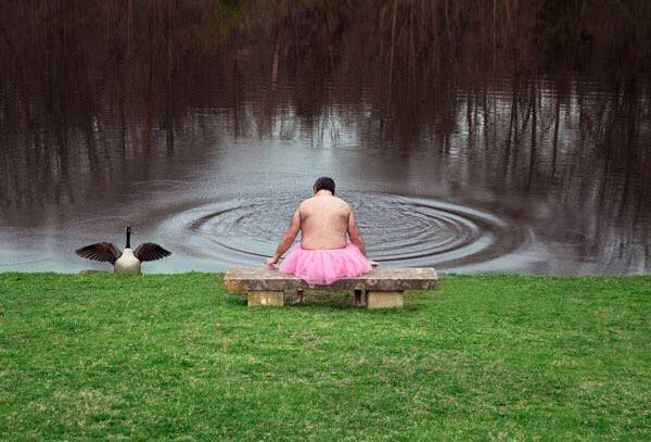 美国摄影师Bob Carey在2003年推出“The Tutu Project”艺术项目,他穿上粉红色的芭蕾舞裙,站在不同的场景中,用不同的姿势拍下一系列看起来十足疯狂又荒诞的照片。