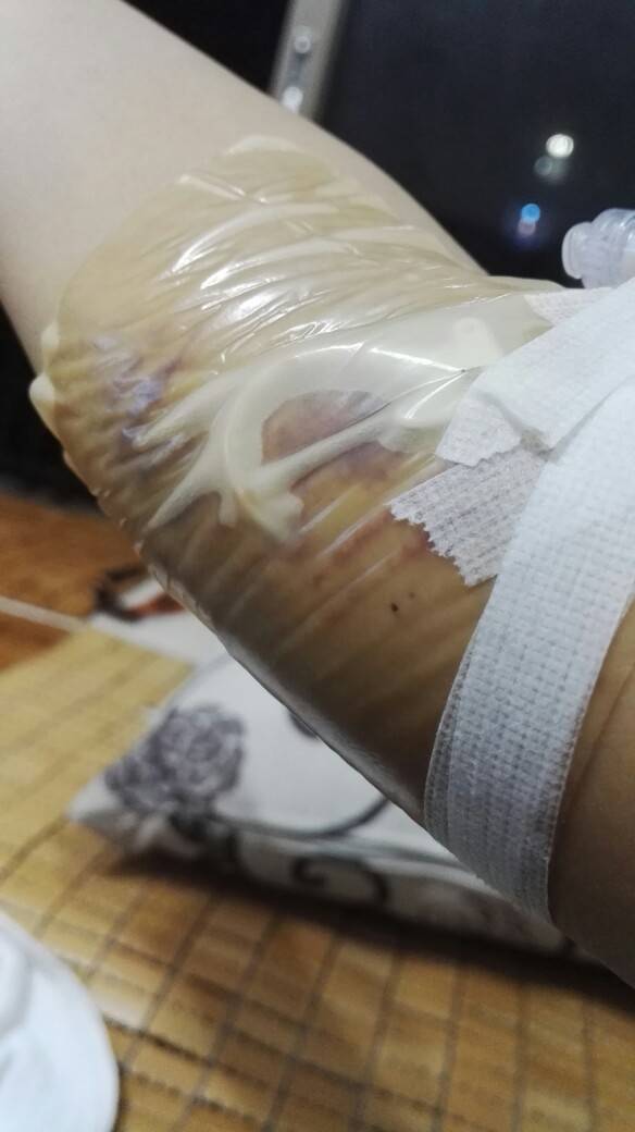 应该给你用纱布覆盖创口吸收渗出的血,一周左右创口愈合就好了,胳膊不要弯曲,尤其是睡觉的时候不要左侧卧以免压着胳膊。