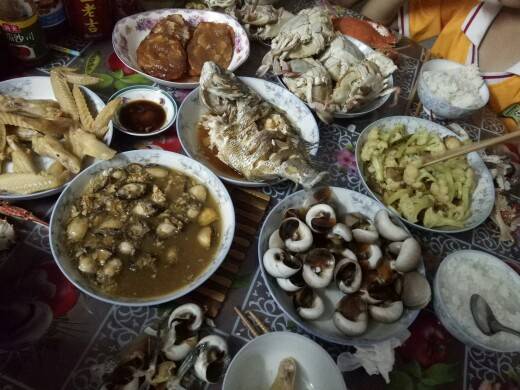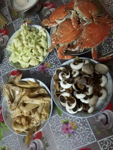 今天外甥女生日,妹夫买了海鲜回来,亲自下厨煮给我们吃,难得。