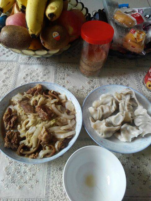 又是你老公回来做的呗?羡慕啊!姐姐,你们南方人吃饺子还吃菜啊?