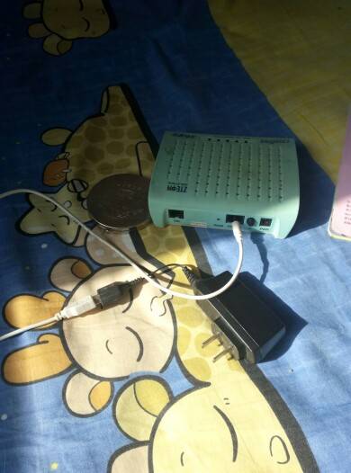 这个上网用的猫他不认识,问我:“这是什么?”我说“是看电视用什么盒子”。他貌似懂了,说“电视盒子。”