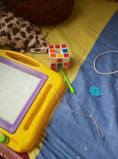 如图:找带线的东西插洞洞里,说“给车车加油”。看过几次他爸用油枪加油。这算独立玩耍还是自闭。