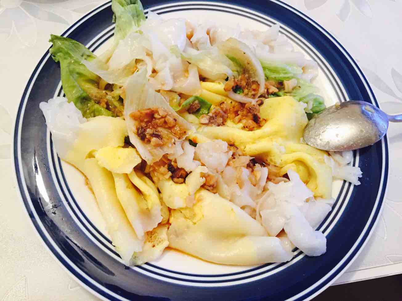 国外党只能自己动手做肠粉。经过几次实验现在越做越好啦好开心!是最简单的鸡蛋肠加生菜。酱汁是用鸡汤底加上打碎的香菇做成。下次可以尝试加猪肉或是虾肉。一开始做的时候要弄好久,现在掌握窍门十多分钟就可以做好一盘。有兴趣想要尝试的做法如下:http://m.xiachufang.com/recipe/100565904/