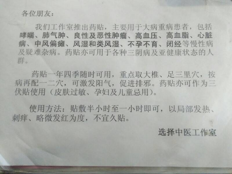 是中医药院开出的药贴方子么?