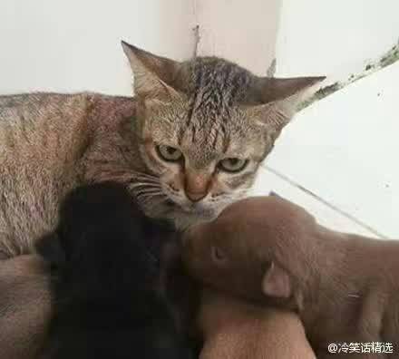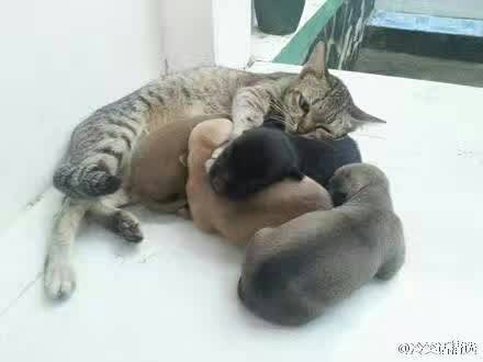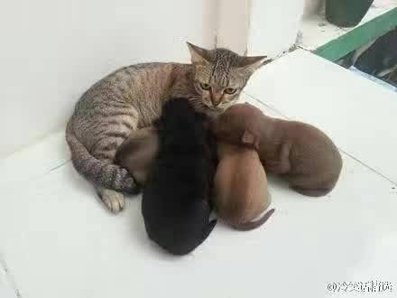狗宝宝出生后,不找狗妈偏要找喵星人要奶喝!狗妈一脸懵逼,而喵星人更懵逼,因为它是公的……[流汗][流汗][流汗][流汗]